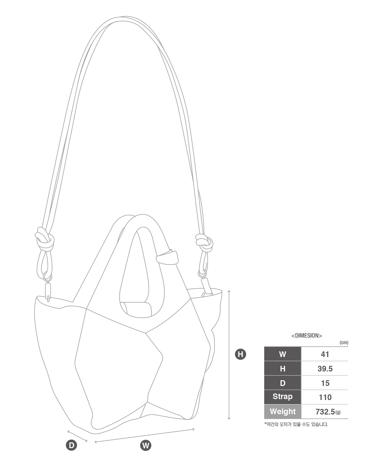 • DIMENSION(cm)bag 41(W) X 39.5(H) X 15(D) / strap 110